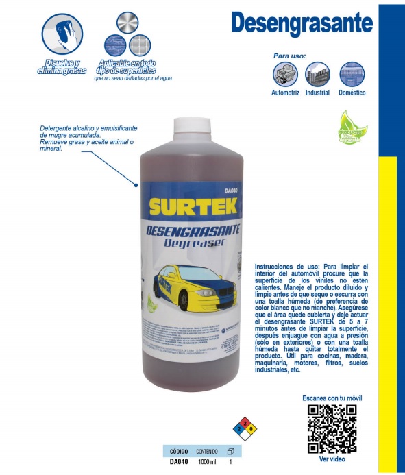 Desengrasante ecológico alcalino. Se puede diluir