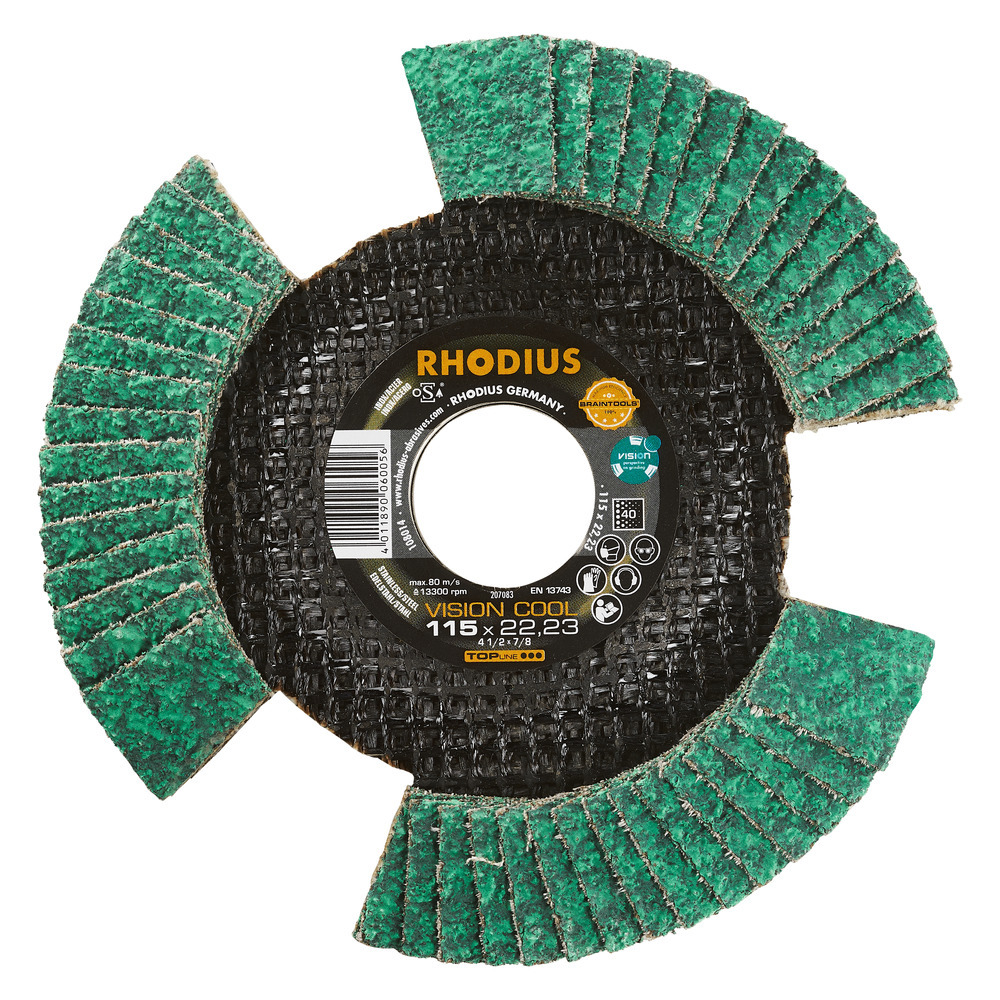 Disco abrasivo de láminas de circonio. Gracias a sus tres entalladuras, VISION COOL se vuelve transparente al girarse