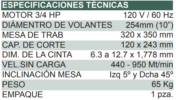 El producto real puede variar a la imagen presentada Sierra cinta 10”