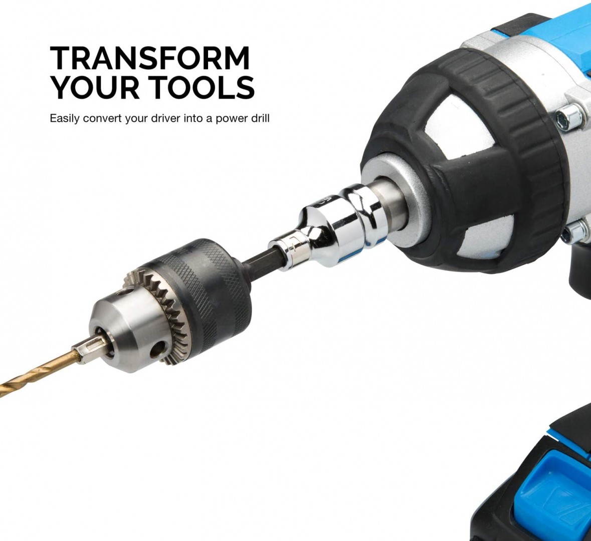 Mandril con 1/4 Vástago hexagonal 4 inch rápidamente se conecta a cualquier atornillador de impacto y convierte a taladrar función,
