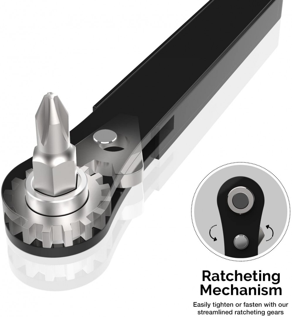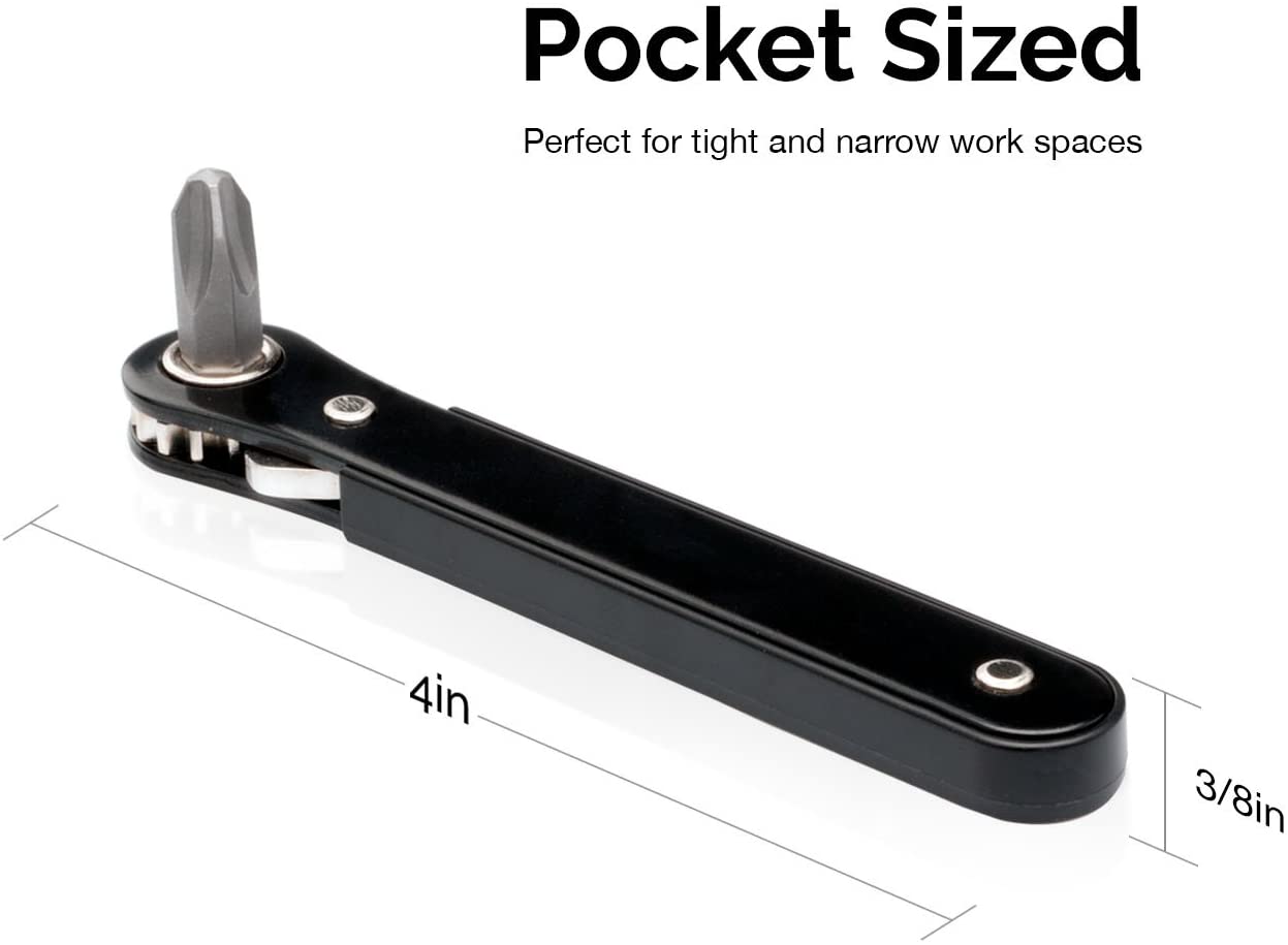 Mango pequeño de 3/8 pulgadas de grosor y 4 pulgadas de largo con trinquete de perfil bajo de 90 grados es perfecto para espacios de trabajo reducidos y cuartos cerrados