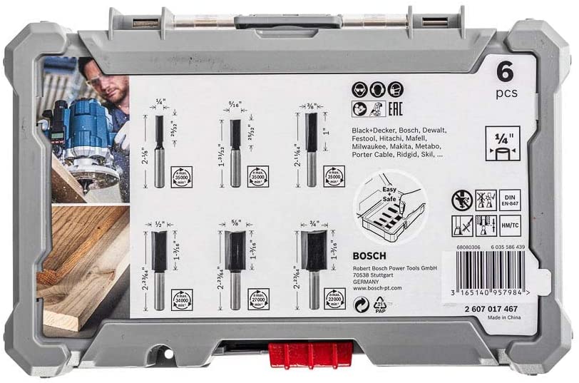 Set de fresas rectas 6 pzs (3/8", 1/2", 1/2", 5/8"