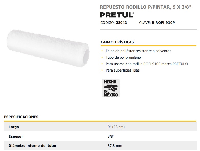 Para usarse con rodillo ROPI-910P marca PRETUL®