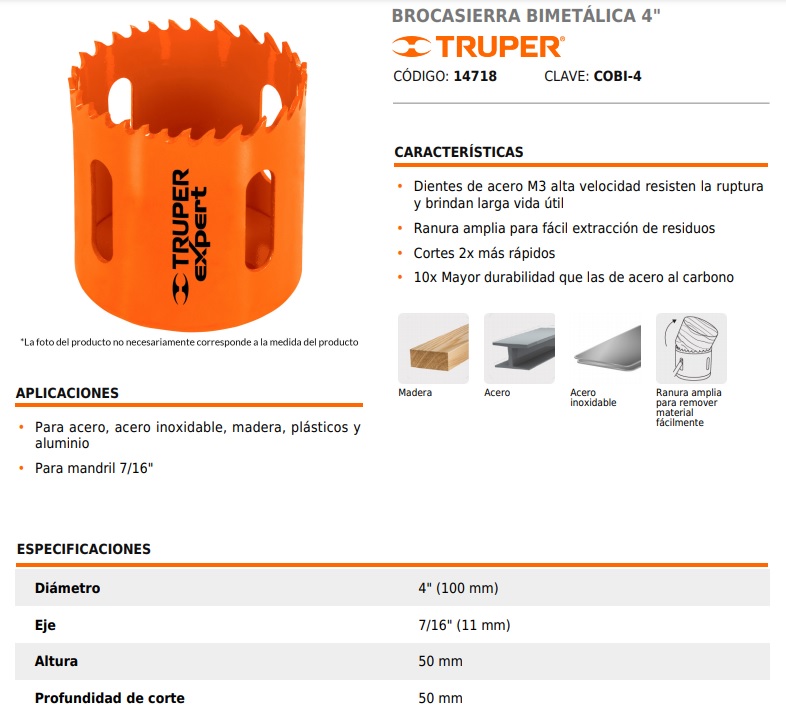 Para acero, acero inoxidable, madera, plásticos y aluminio