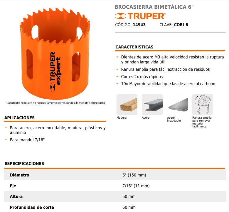 Para acero, acero inoxidable, madera, plásticos y aluminio