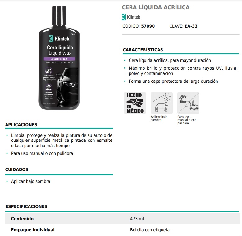 Cera en pasta con silicón, para mayor brilloProte