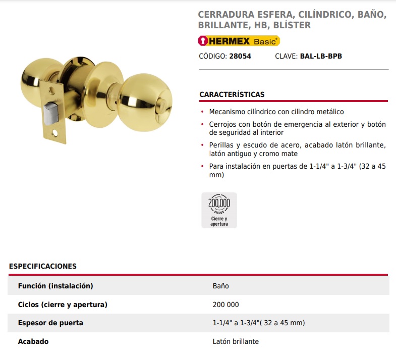 El producto real puede variar a la imagen presentada Cerradura esfera, cilíndrico, baño, brillante, hb, blíster