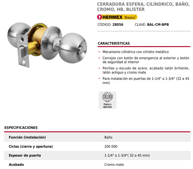 Para instalación en puertas de 1-1/4" a 1-3/4" (32 a 45 mm)