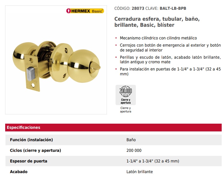 Para instalación en puertas de 1-1/4" a 1-3/4" (32 a 45 mm)