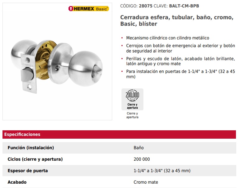 Para instalación en puertas de 1-1/4" a 1-3/4" (32 a 45 mm)