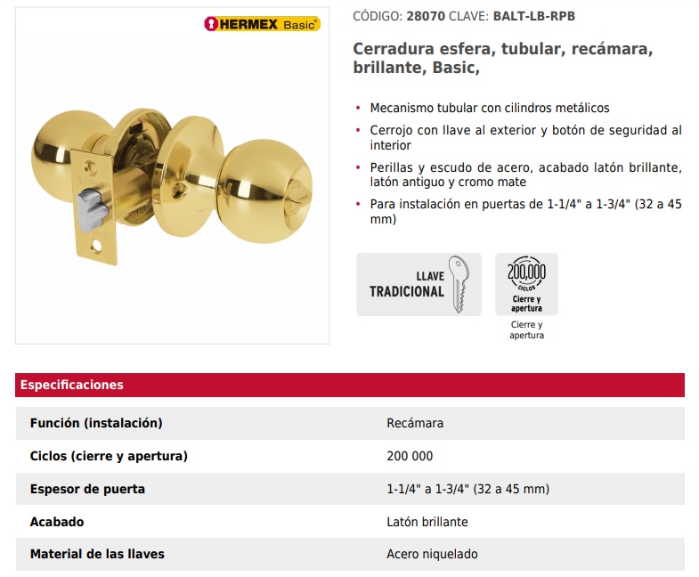 Cerrojos con llave al exterior y botón de seguridad al interior