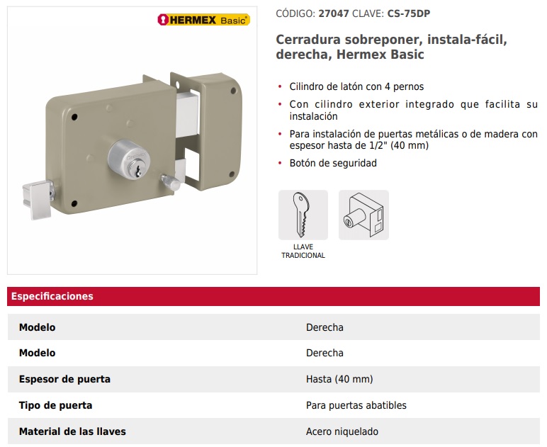 Para instalación de puertas metálicas o de madera con espesor hasta de 1/2" (40 mm)