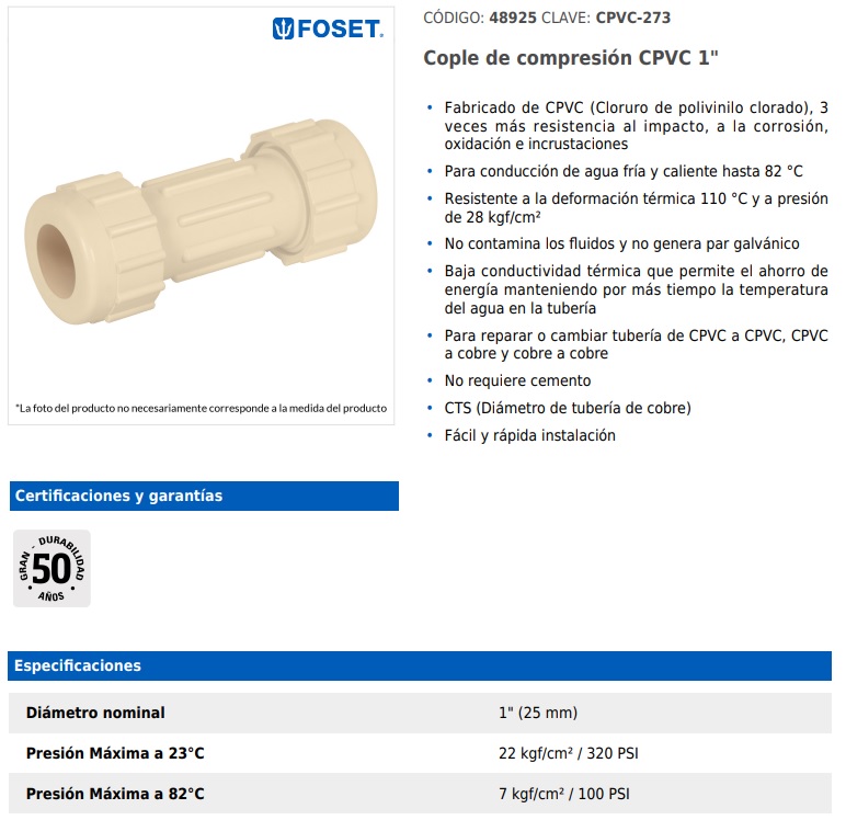 Fabricados de CPVC (Cloruro de polivinilo clorado), 3 veces más resistencia al impacto, a la corrosión, oxidación e incrustaciones