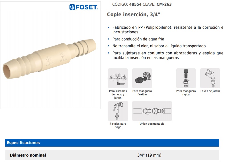 Para sujetarse en conjunto con abrazaderas y espiga que facilita la inserción en las mangueras