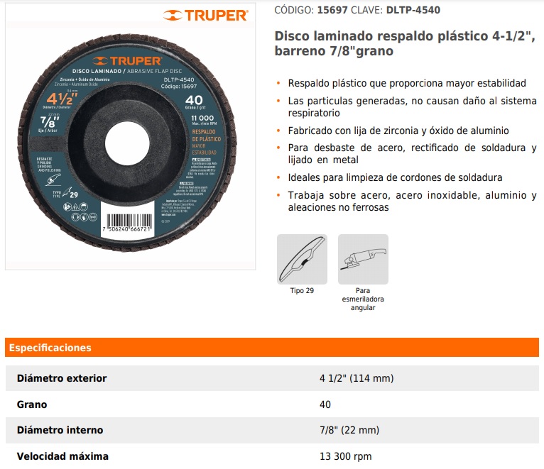 Para desbaste de acero, rectificado de soldadura y lijado en metal