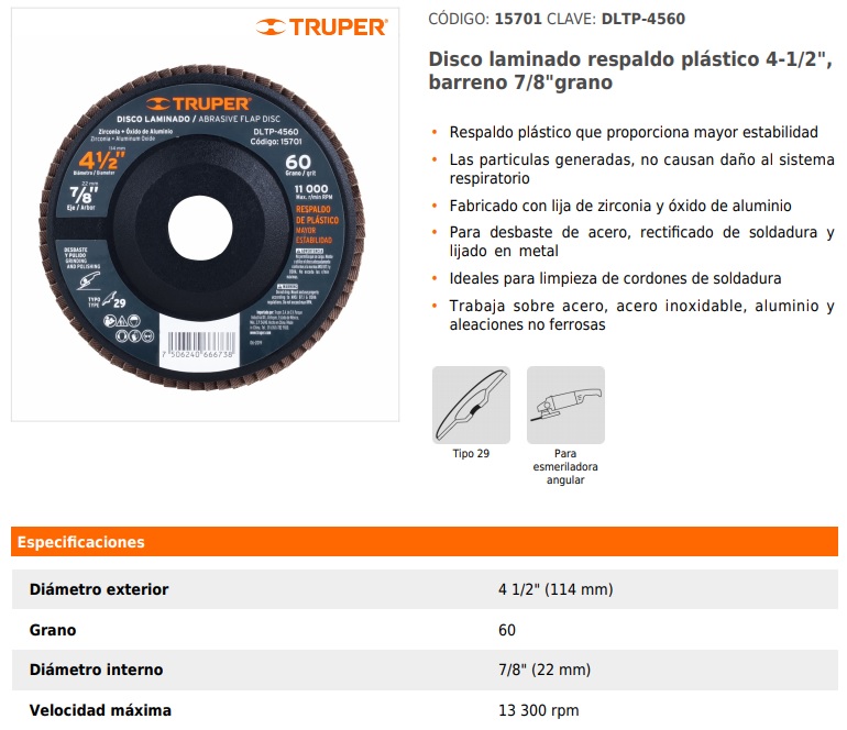 Para desbaste de acero, rectificado de soldadura y lijado en metal