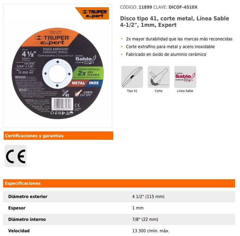 y acero inoxidable de 115 x 0.75 x 22.23, IMPERIAL