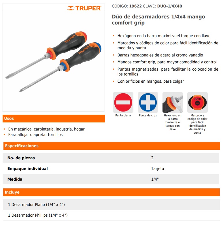 Marcados y códigos de color para fácil identificación de medida y punta