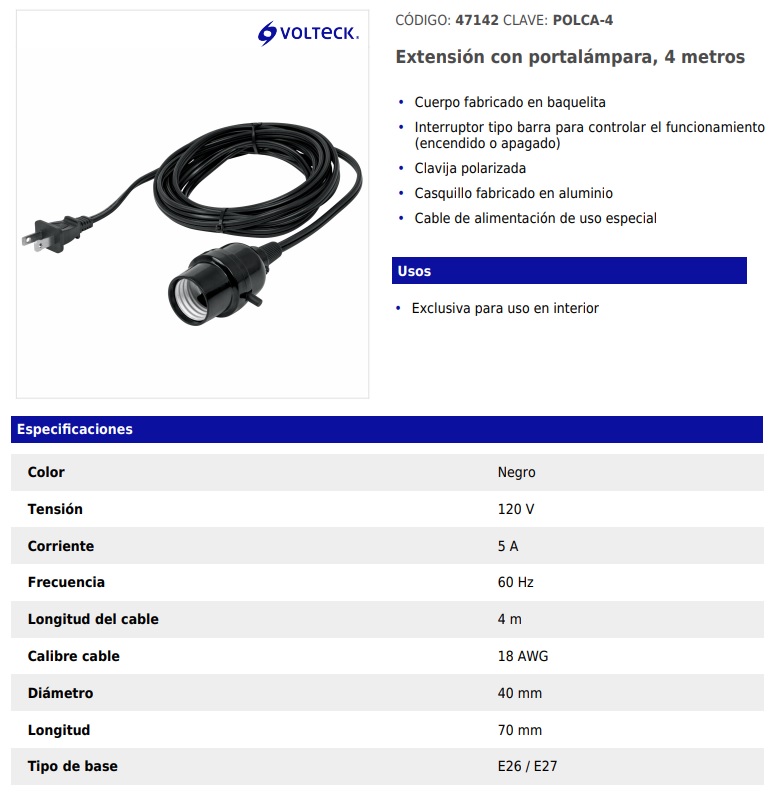 Cable de alimentación de uso especial
