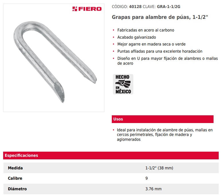 Diseños en U para mayor fijación de alambres o mallas de acero