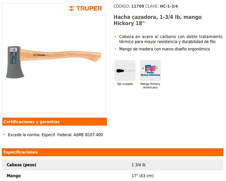 Mango de 36".Peso 2 1/2 libras. Cabeza forjada e
