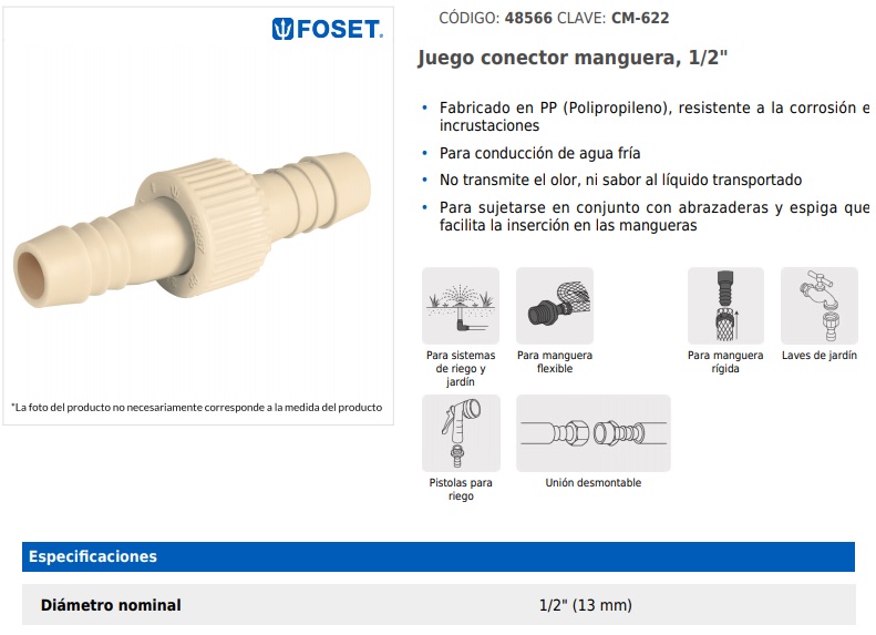 Para sujetarse en conjunto con abrazaderas y espiga que facilita la inserción en las mangueras