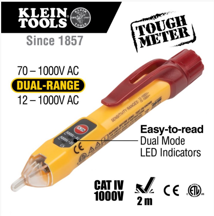 Las capacidades de rango dual del probador de voltaje sin contacto permiten que el probador detecte de 12 a 1000 V CA o de 70 a 1000 V CA para una amplia variedad de aplicaciones de voltaje estándar o bajo voltaje