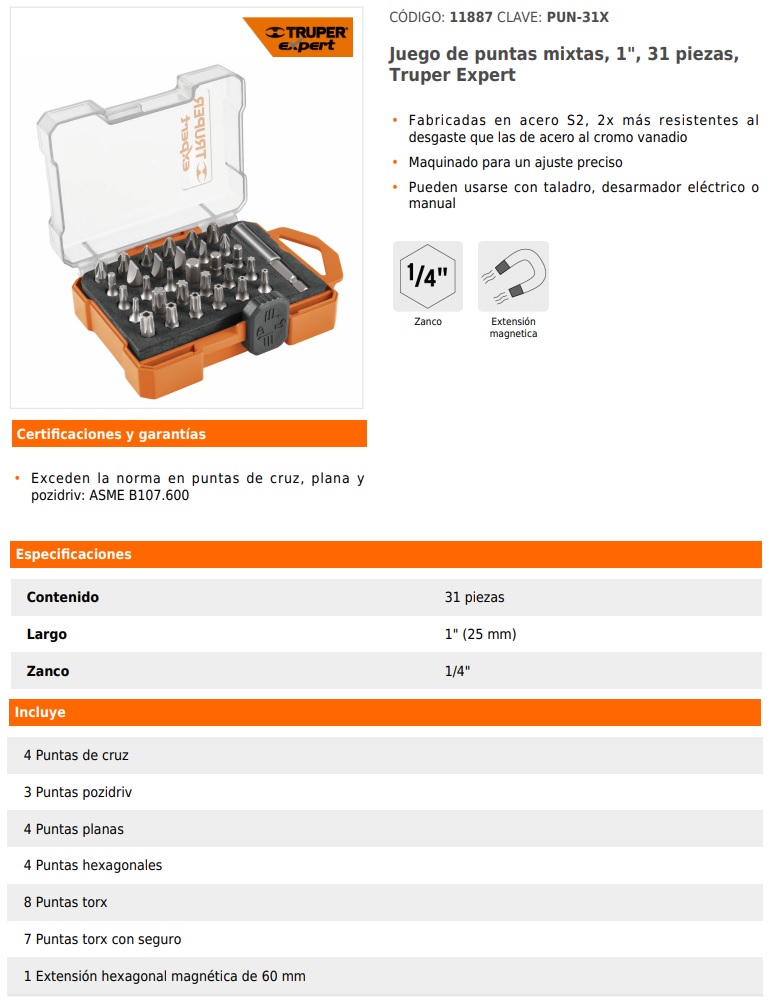 Puntas Torx de T10 a T60 Cuadro 1/4”, 3/8” y 1