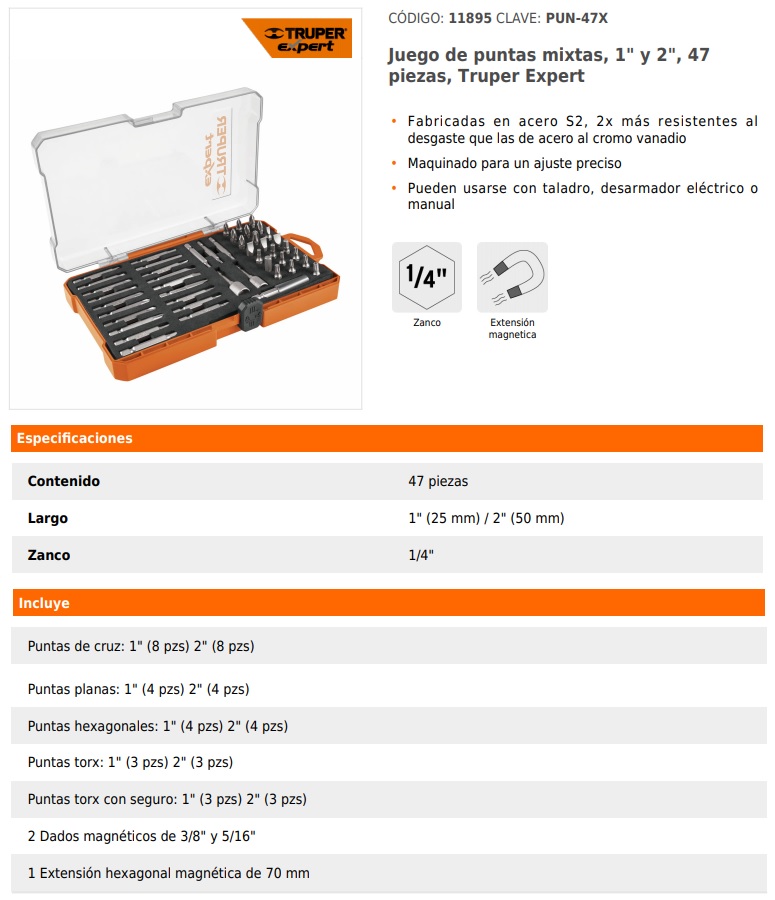 Puntas Torx de T10 a T60 Cuadro 1/4”, 3/8” y 1