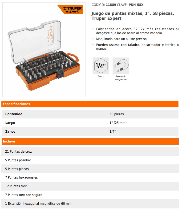 4 Puntas Phillips ® 25 mm PH1, PH3, PH2x2 4 Punta