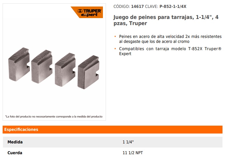 Compatibles con tarraja modelo T-852X Truper® Expert