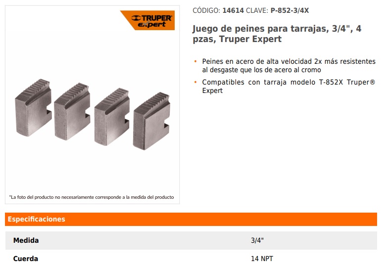 Compatibles con tarraja modelo T-852X Truper® Expert