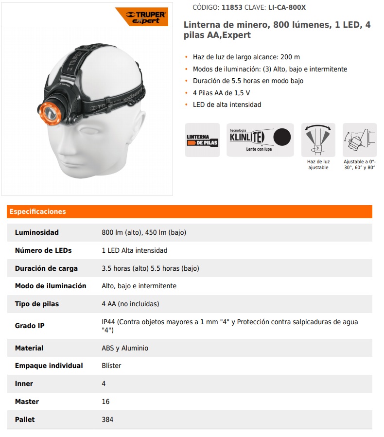 Cabeza giratoria para regular el haz de luz.