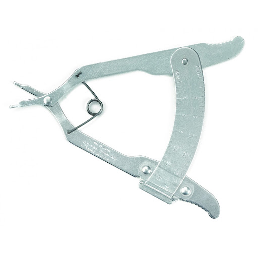 El calibrador mide el revestimiento restante de las pastillas del freno en fracciones de 1/16” a 5/8” en