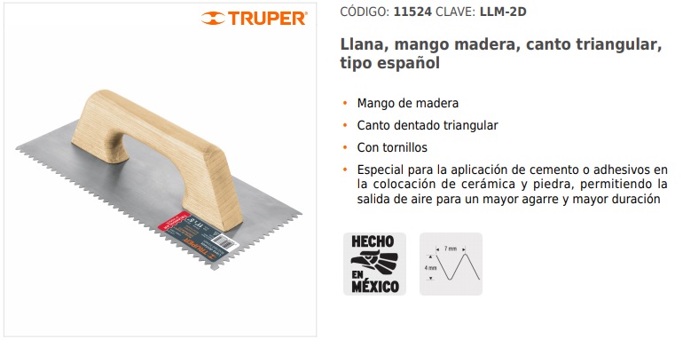 Especial para la aplicación de cemento o adhesivos en la colocación de cerámica y piedra, permitiendo la salida de aire para un mayor agarre y mayor duración