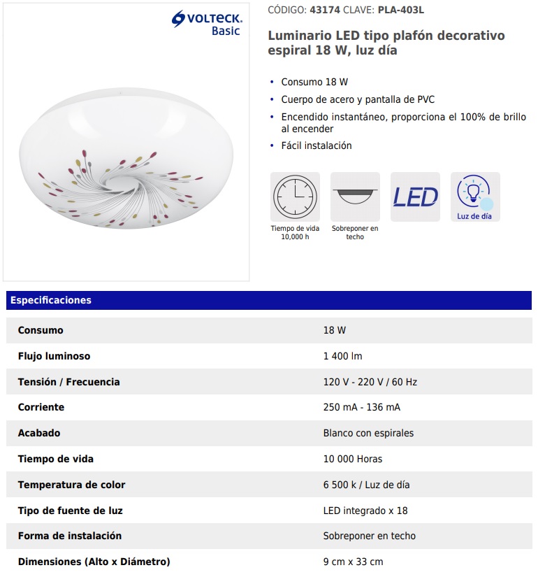 Consumos de 8 W. 15 W, 18 W y 22 W