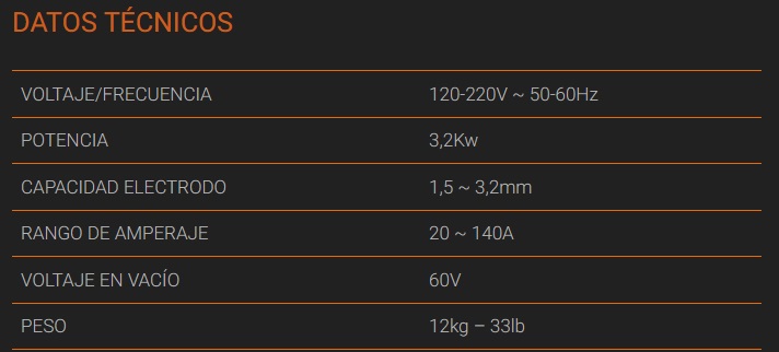 56V Voltaje en vacío 5340 W Potencia Bajo consumo