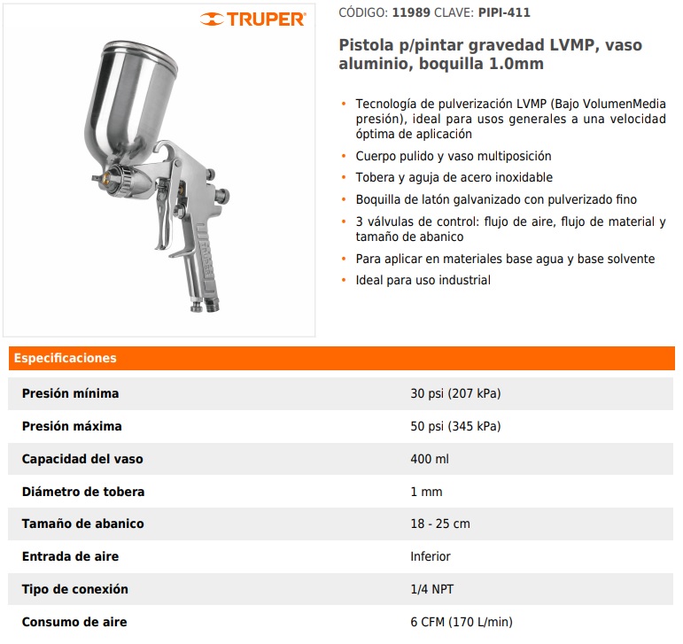 Tecnología de pulverización LVMP (Bajo VolumenMedia presión), ideal para usos generales a una velocidad óptima de aplicación