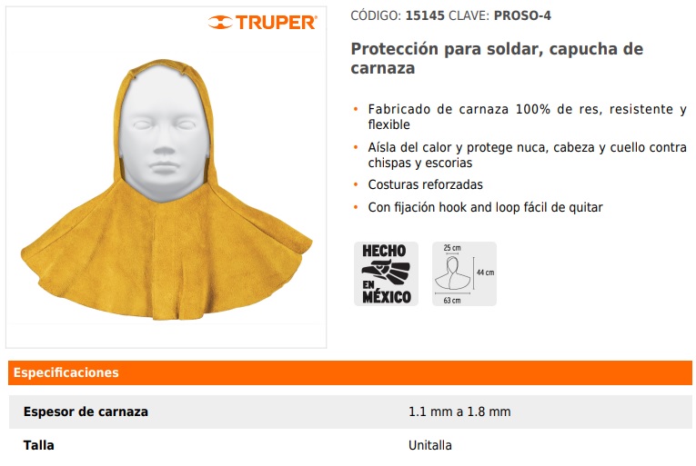 Aísla del calor y protege nuca, cabeza y cuello contra chispas y escorias