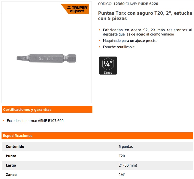 Longitud 2 3/4” Hexágono 1/4” Uso