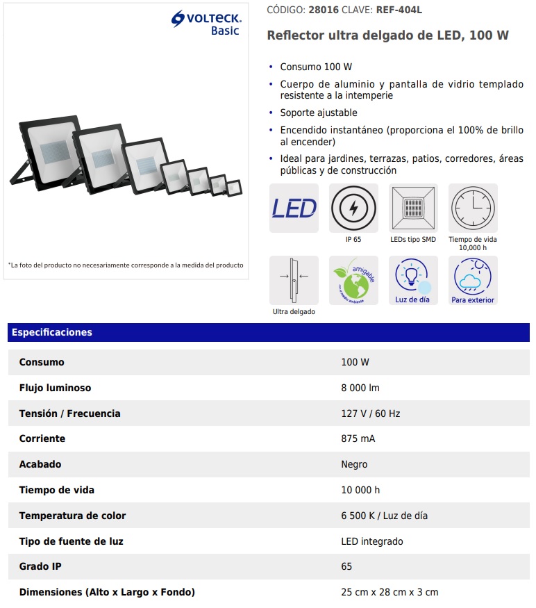 Comsumos de 10 W, 20 W, 30 W, 50 W, 100 W, 150 W y 200 W
