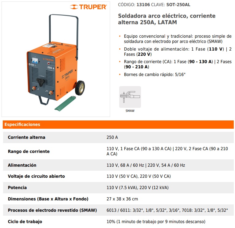 Equipo convencional y tradicional: proceso simple de soldadura con electrodo por arco eléctrico (SMAW)