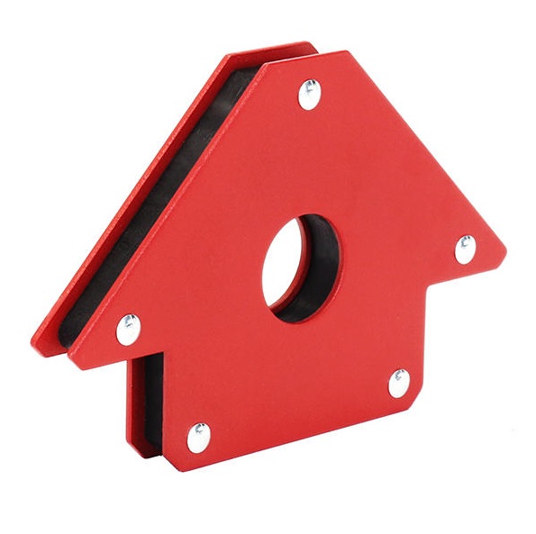 el imán de ángulo está hecho de chapa de acero gruesa pintada de rojo (A3) y ferrita con un orificio para un mejor manejo