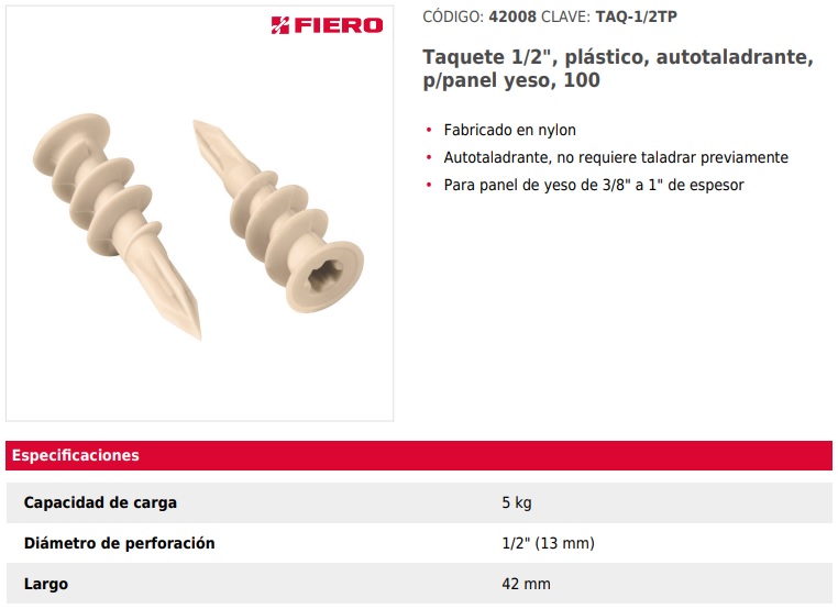 Autotaladrante, no requiere taladrar previamente