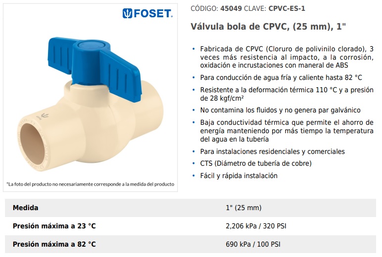 Fabricadas de CPVC (Cloruro de polivinilo clorado), 3 veces más resistencia al impacto, a la corrosión, oxidación e incrustaciones con manerales de ABS