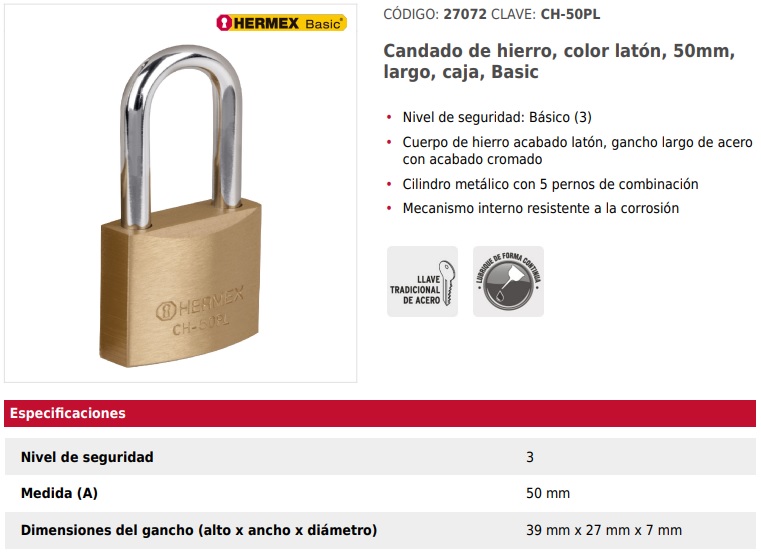 Cuerpos de hierro, con acabado latón, ganchos largos de acero con acabado cromado