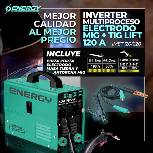 Diseñadas para trabajos de fuerza, para procesos de soldadura TIG Lift - Electrodo - MIG Flux alto rendimiento y fácil soldabilidad, regulación de amperaje de infinitos puntos, de bajo consumo eléctrico, consume 1/3 de energía del consumo de un transformador