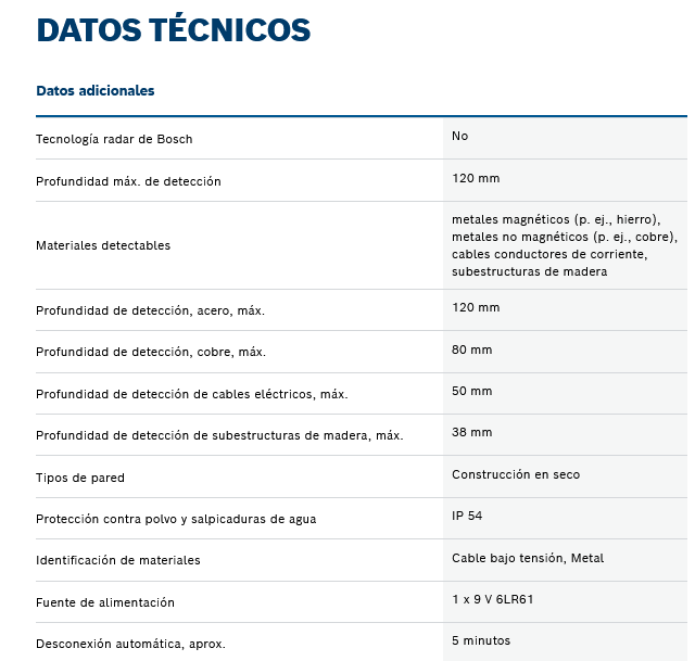 Localiza el metal y los cables bajo tensión en varios tipos de paredes, así como subestructuras de madera en pladur