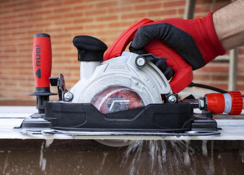 Cortadora Electro-portátil diseñada para el corte de materiales de construcción, ya sea cortes rectos longitudinales o en inglete con diferentes ángulos hasta 45 grados, corte de lámina cerámica y todo tipo de baldosa cerámica, apta para piedra natural y piedra sinterizada