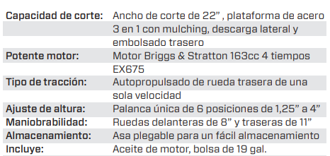 163-cc 22-in Podadora llantas T/D autopropulsada